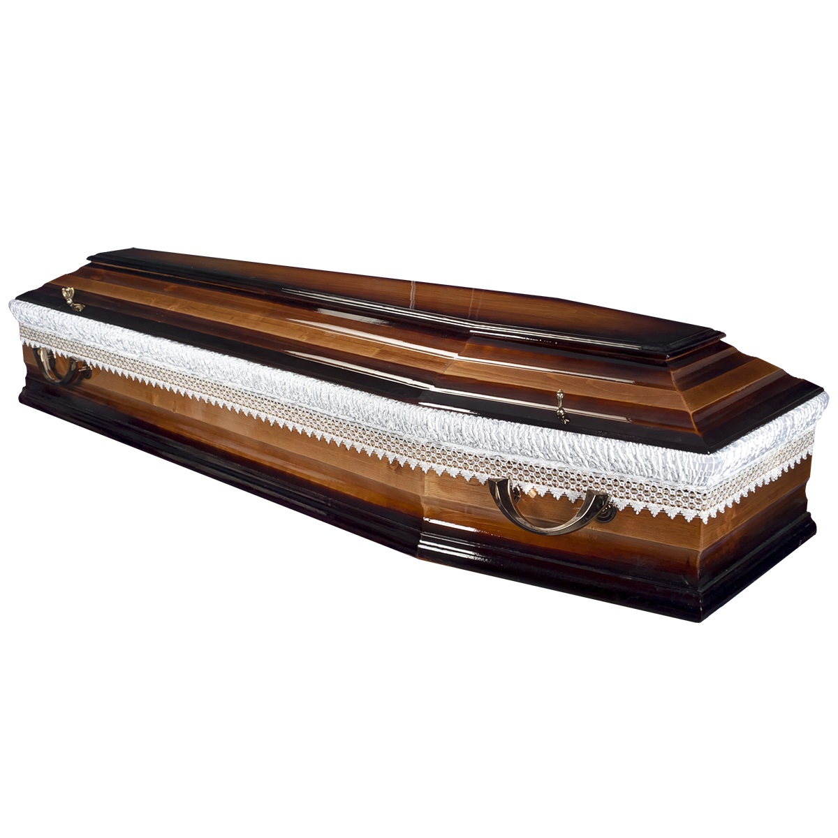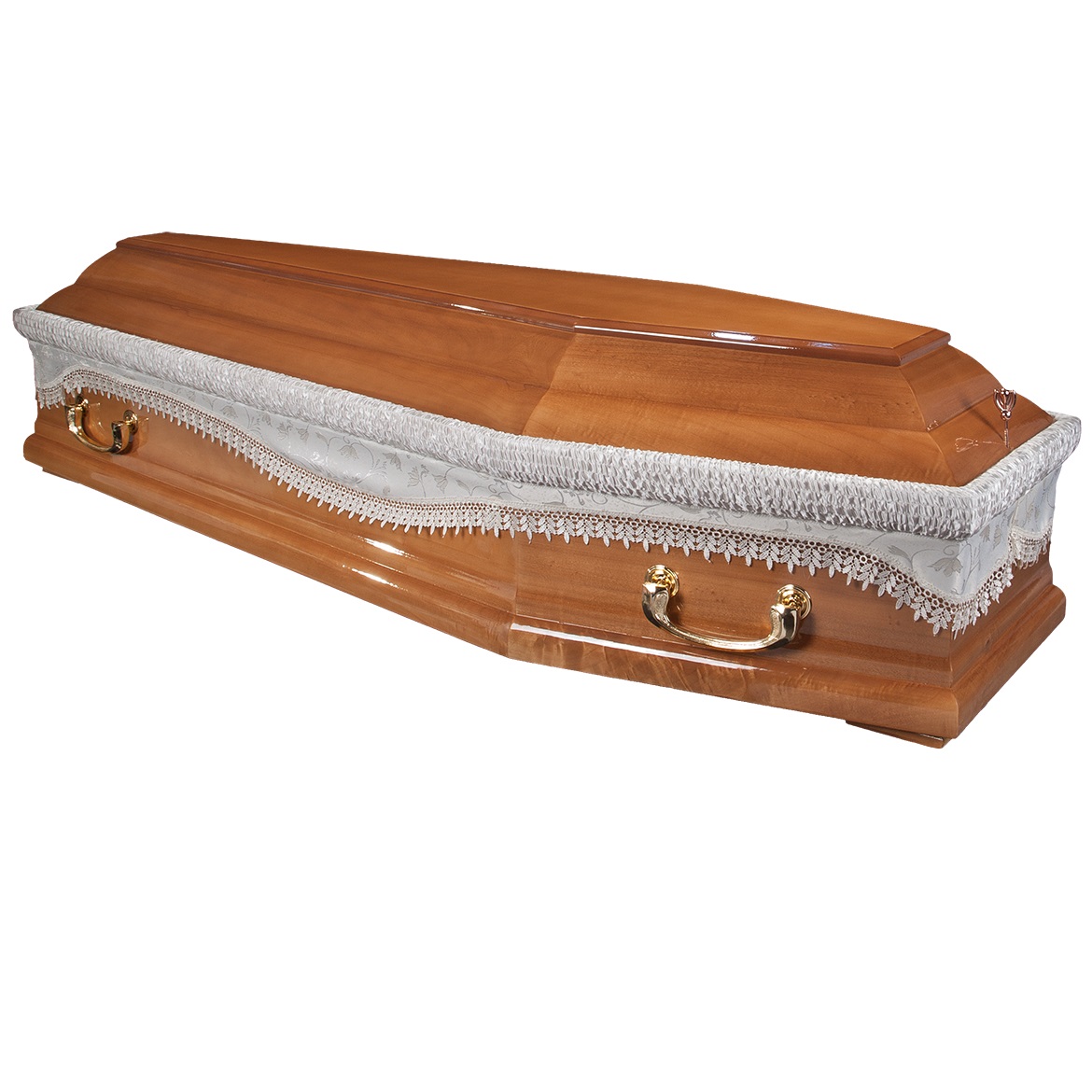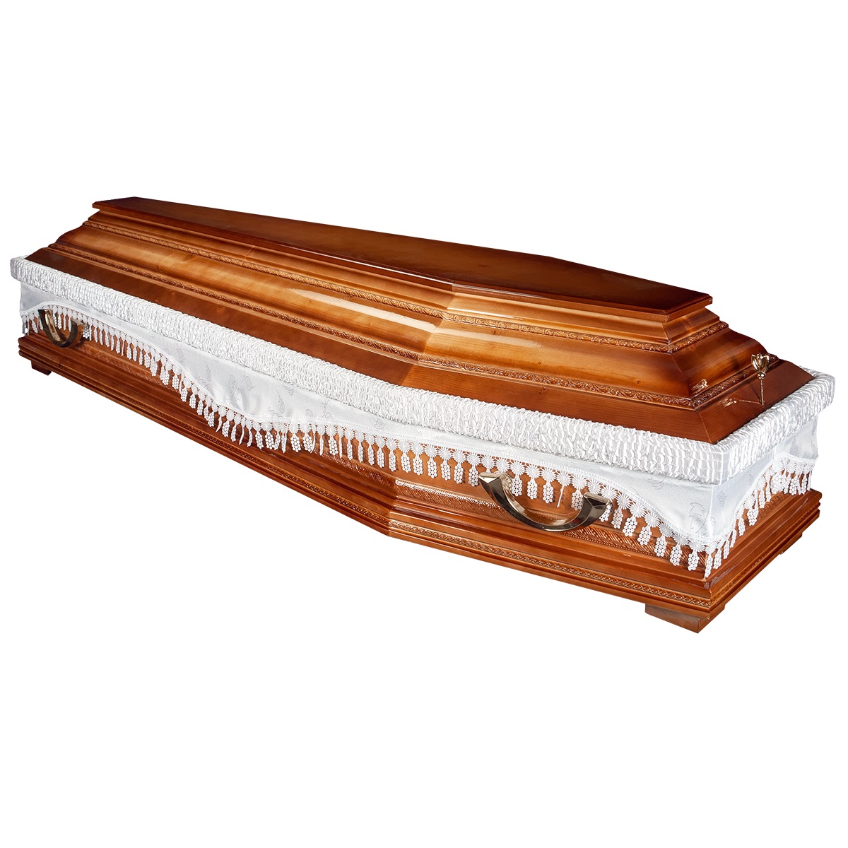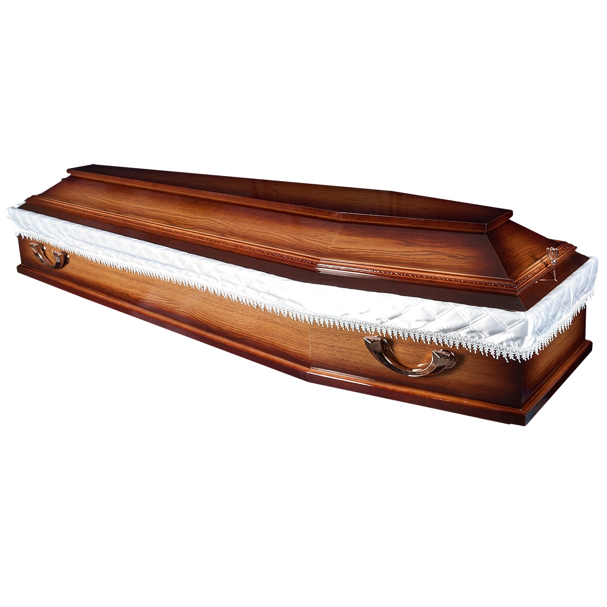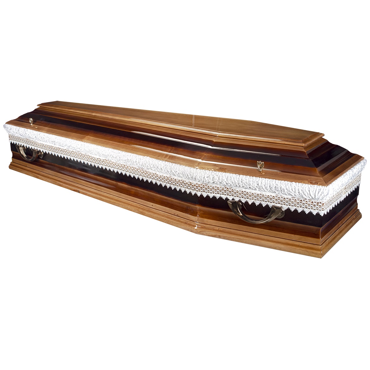 A hatszögletű koporsók a hagyományos temetések klasszikus formavilágát képviselik. Letisztult vonalvezetésük, elegáns arányai és időtálló megjelenésük méltóságteljes búcsút biztosítanak. Kínálatunkban többféle színben és kidolgozással elérhetők, igény szerint választható belső kárpitozással és fogantyúval.