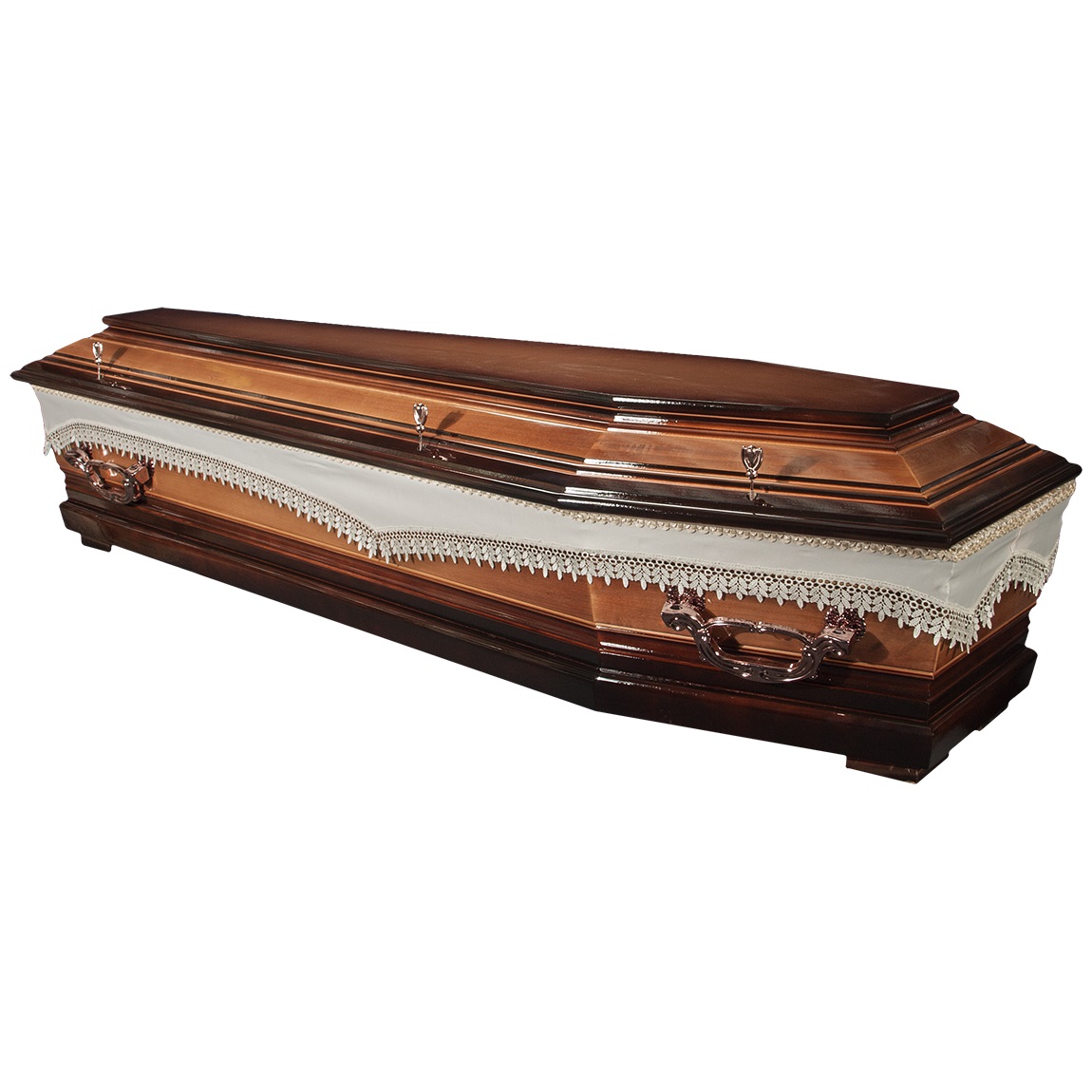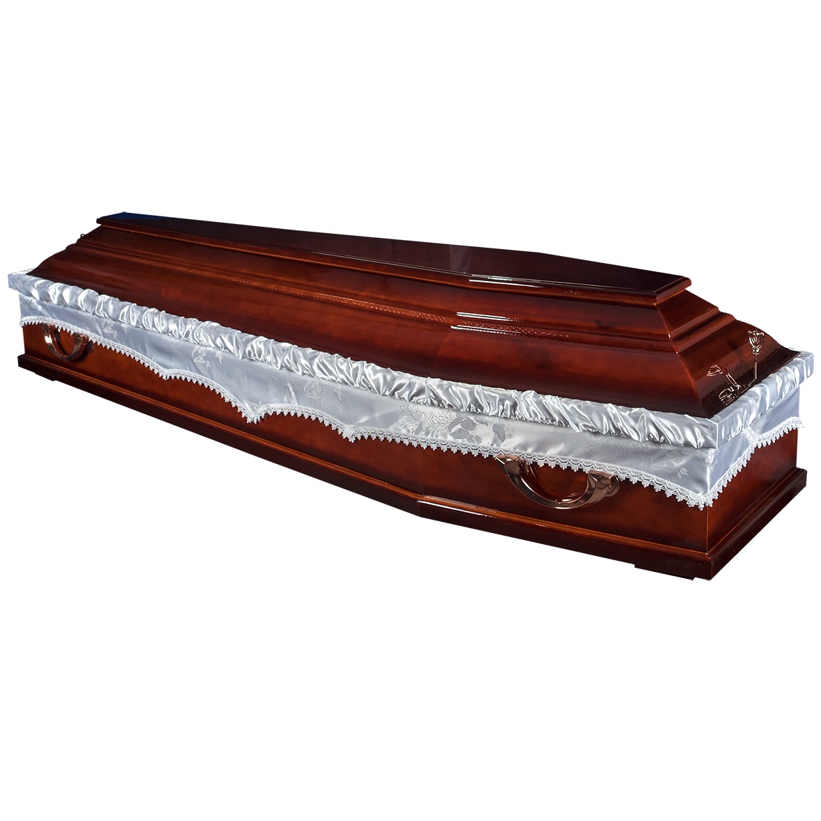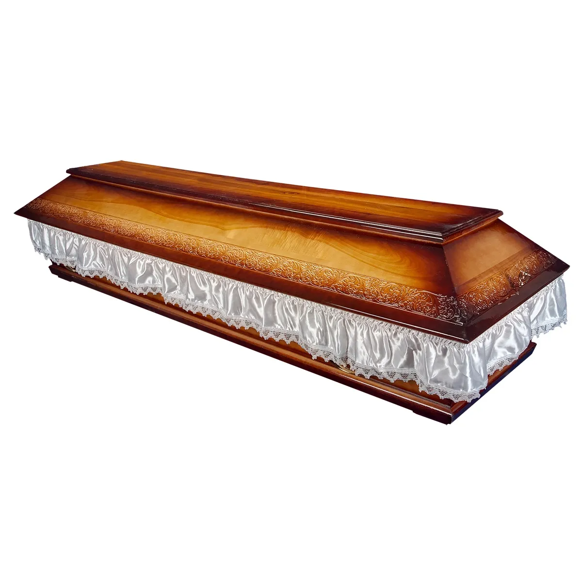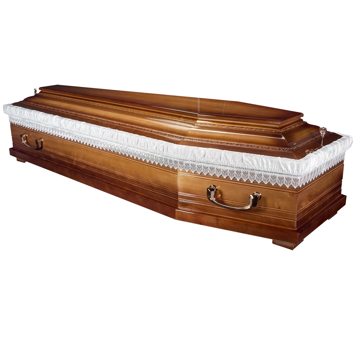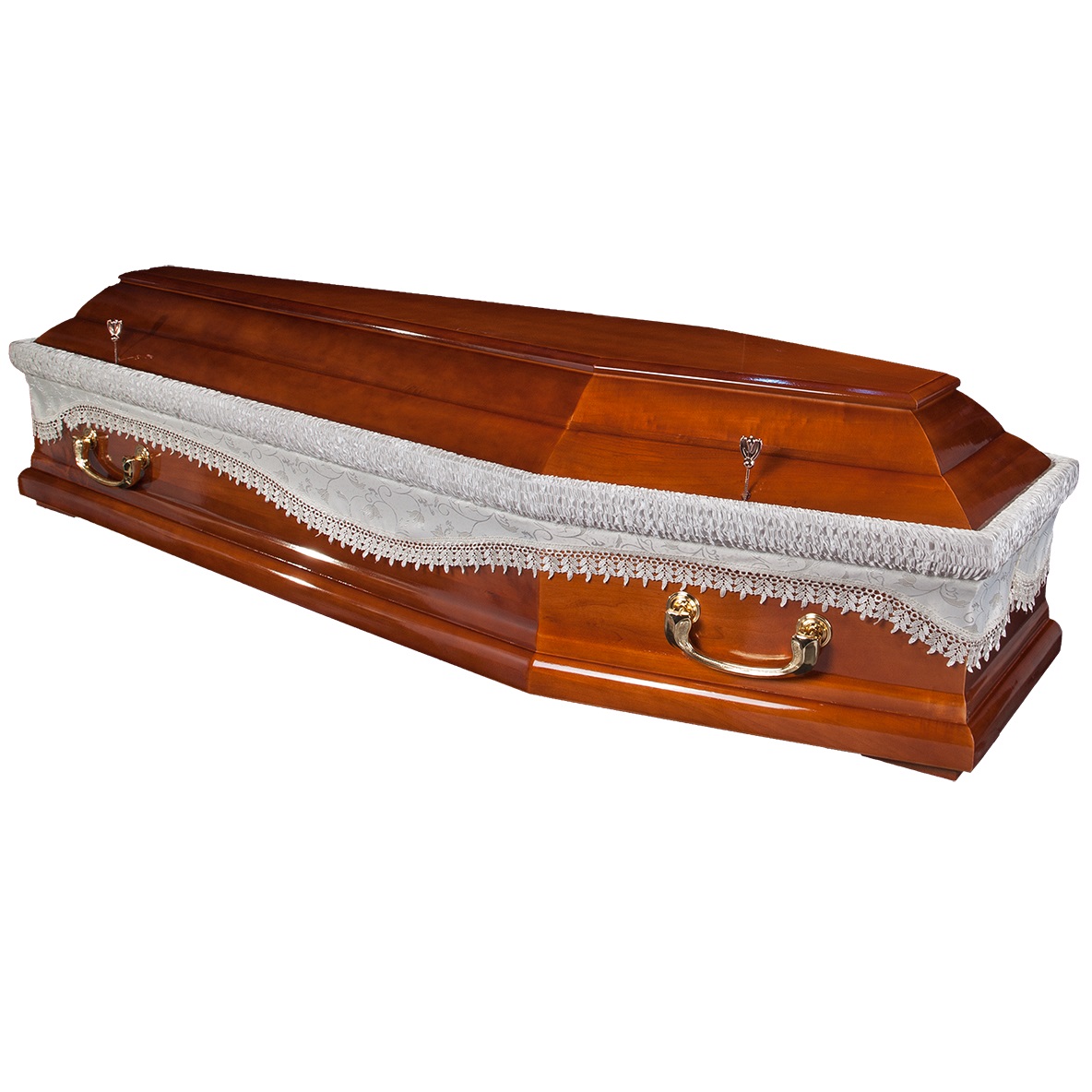 A hatszögletű koporsók a hagyományos temetések klasszikus formavilágát képviselik. Letisztult vonalvezetésük, elegáns arányai és időtálló megjelenésük méltóságteljes búcsút biztosítanak. Kínálatunkban többféle színben és kidolgozással elérhetők, igény szerint választható belső kárpitozással és fogantyúval.