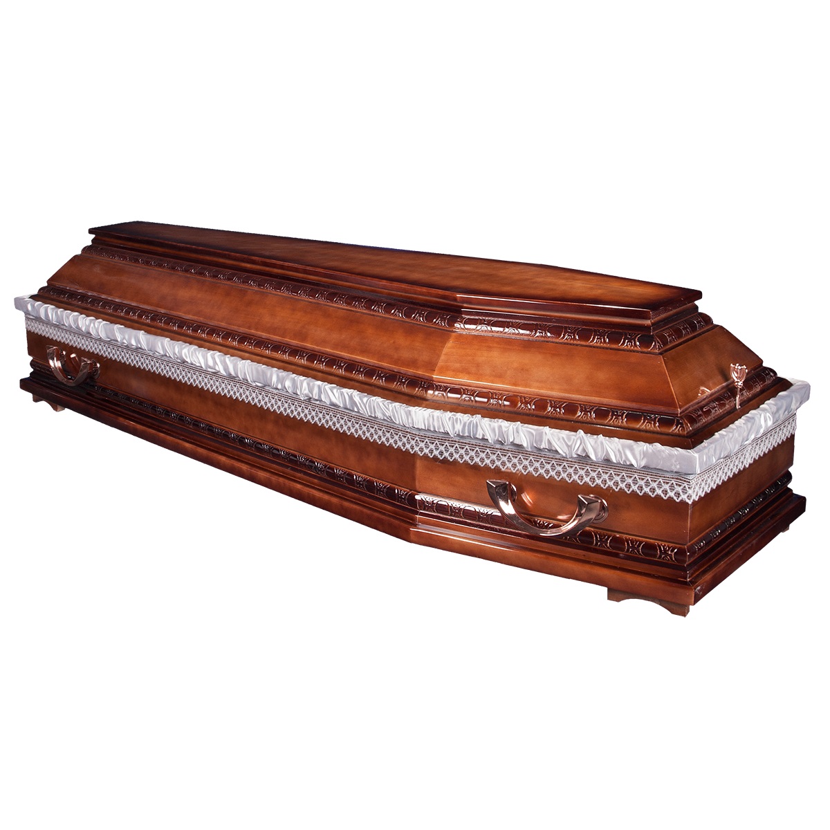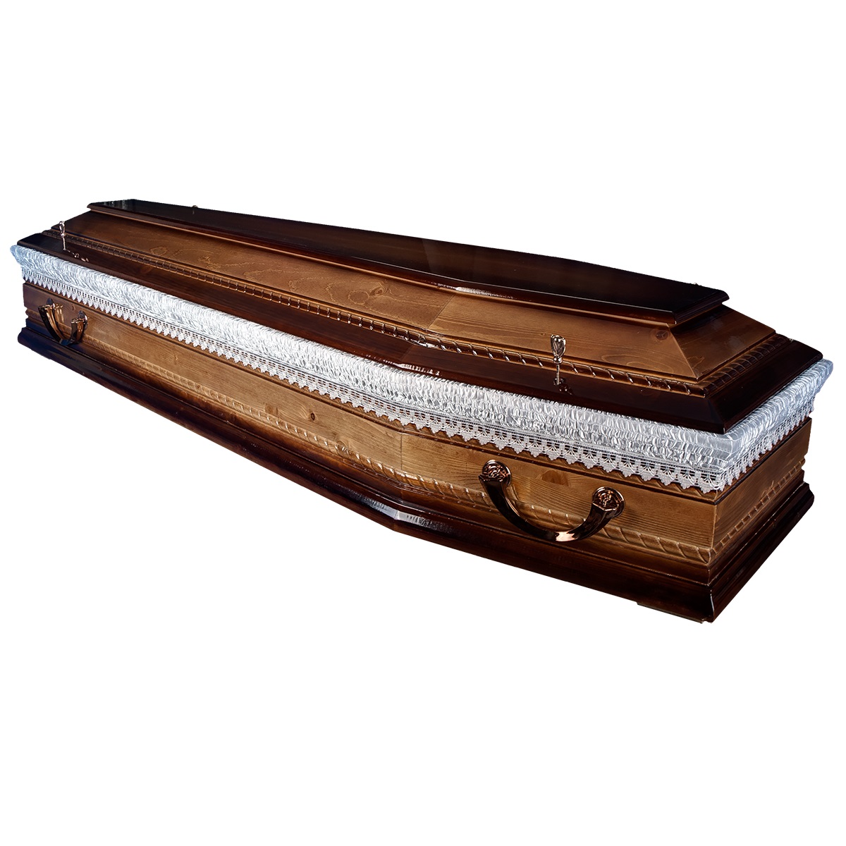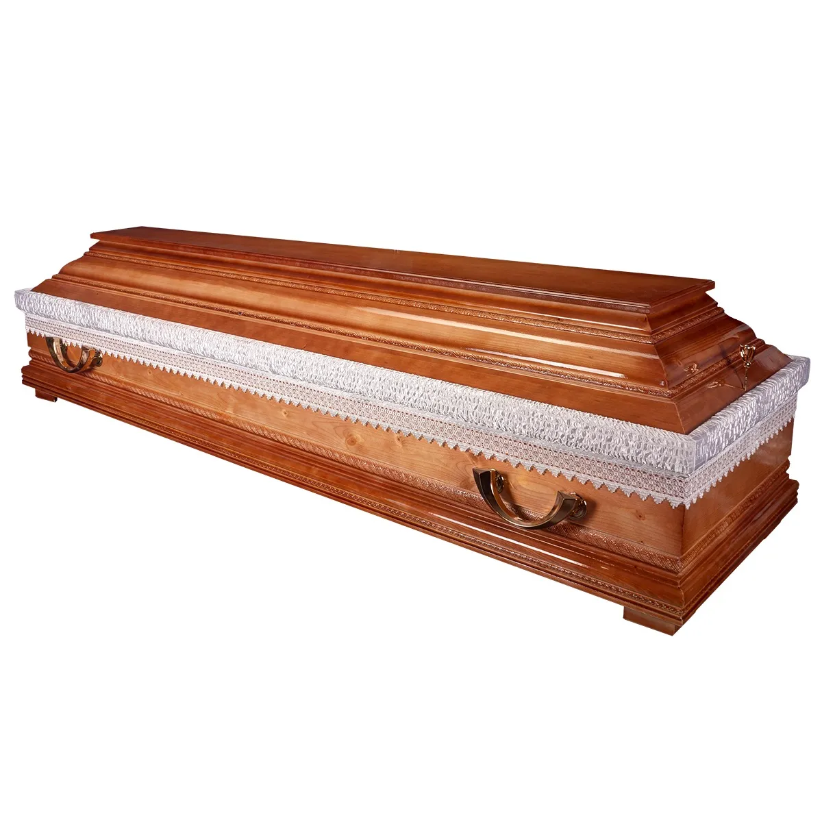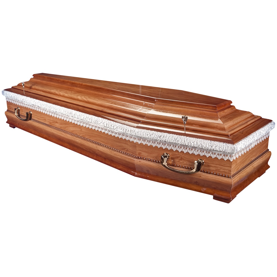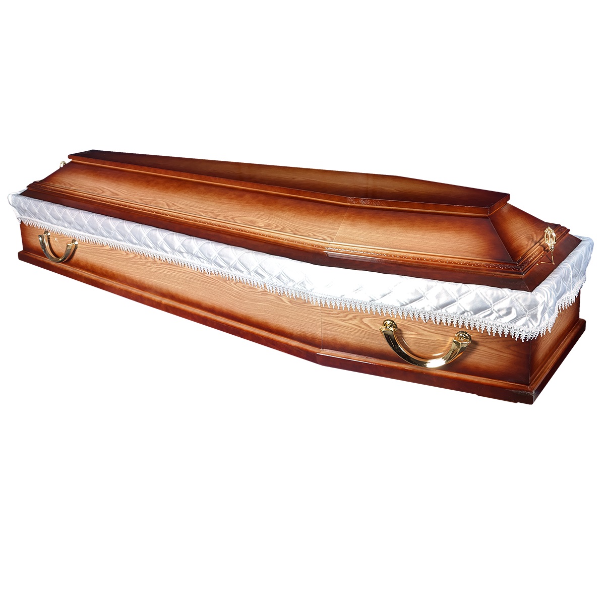 A hatszögletű koporsók a hagyományos temetések klasszikus formavilágát képviselik. Letisztult vonalvezetésük, elegáns arányai és időtálló megjelenésük méltóságteljes búcsút biztosítanak. Kínálatunkban többféle színben és kidolgozással elérhetők, igény szerint választható belső kárpitozással és fogantyúval.
