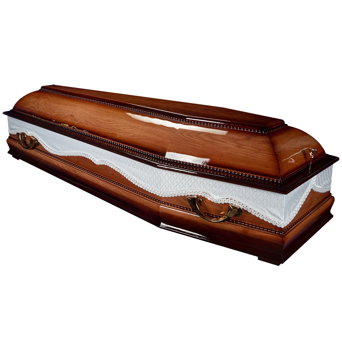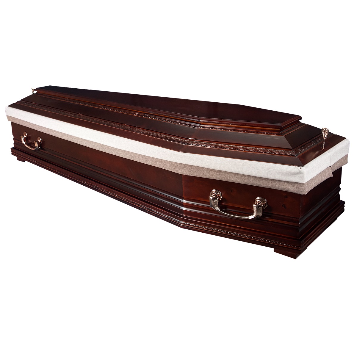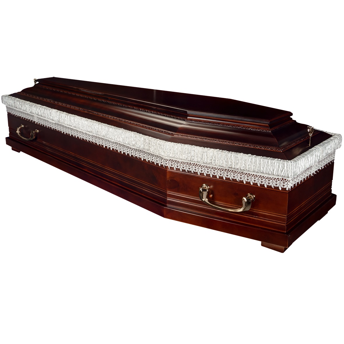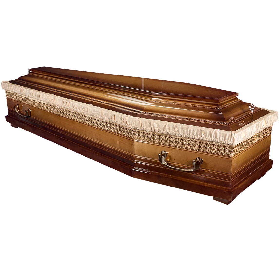 A hatszögletű koporsók a hagyományos temetések klasszikus formavilágát képviselik. Letisztult vonalvezetésük, elegáns arányai és időtálló megjelenésük méltóságteljes búcsút biztosítanak. Kínálatunkban többféle színben és kidolgozással elérhetők, igény szerint választható belső kárpitozással és fogantyúval.
