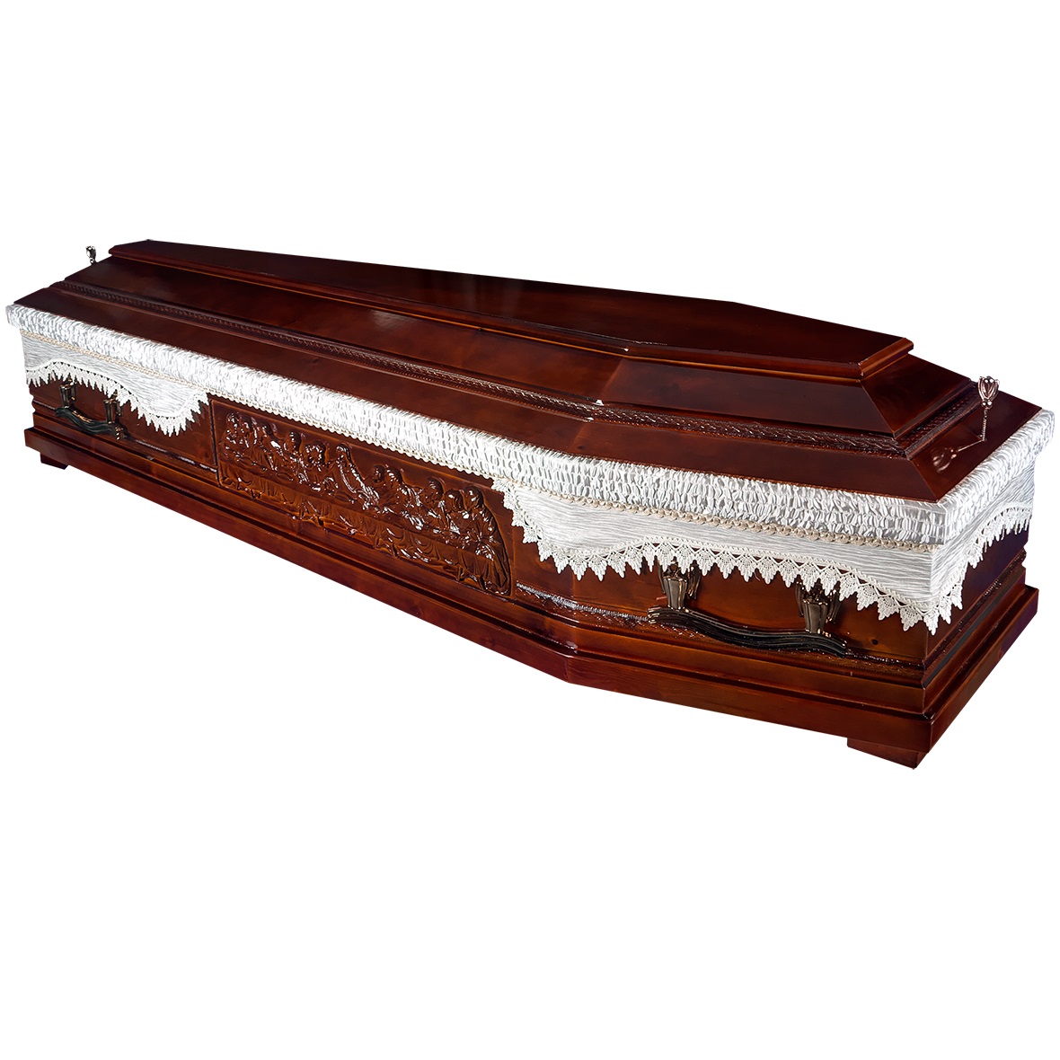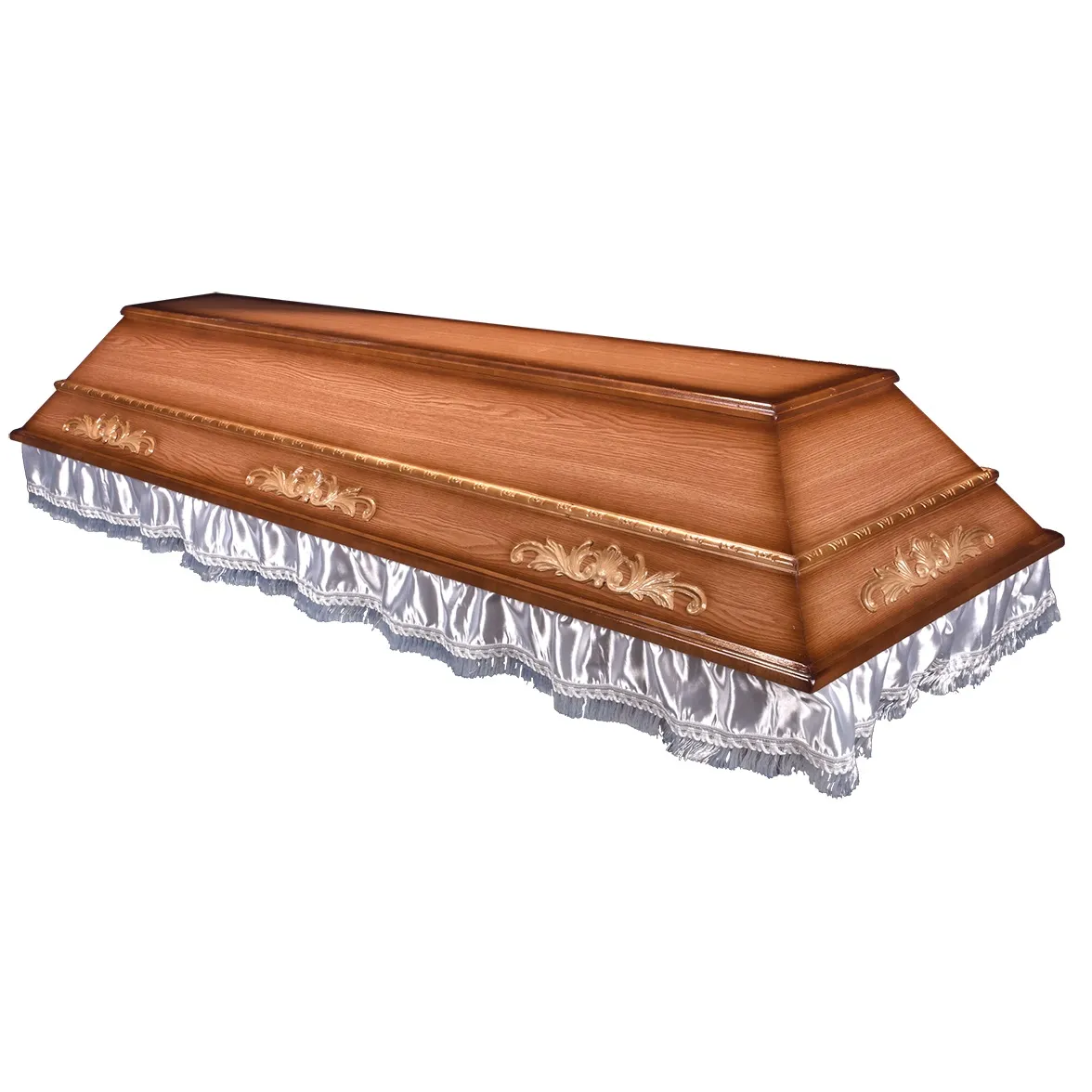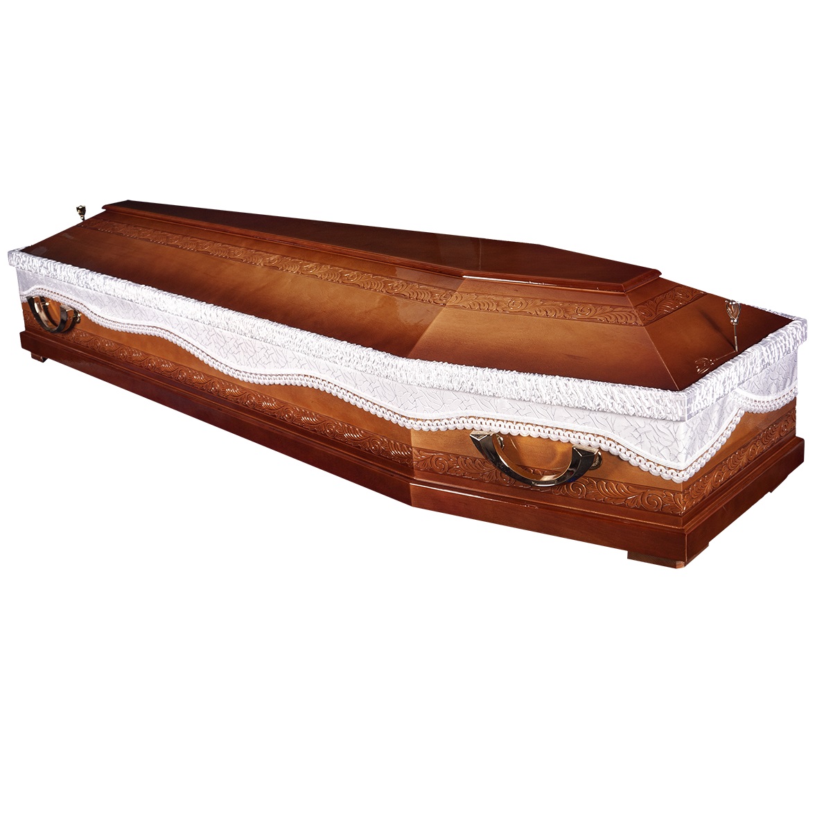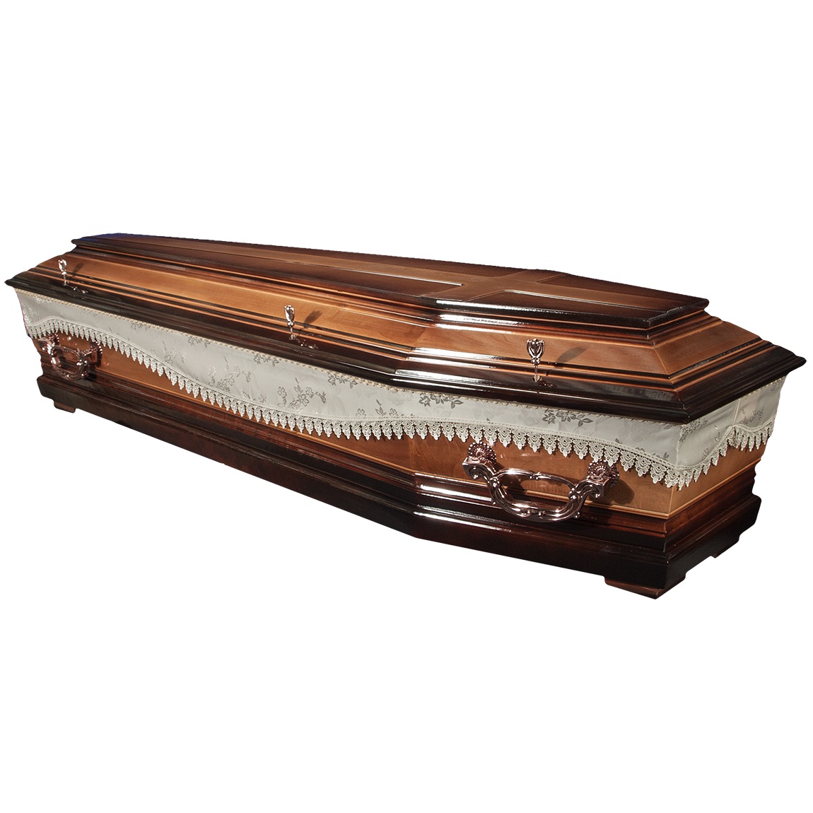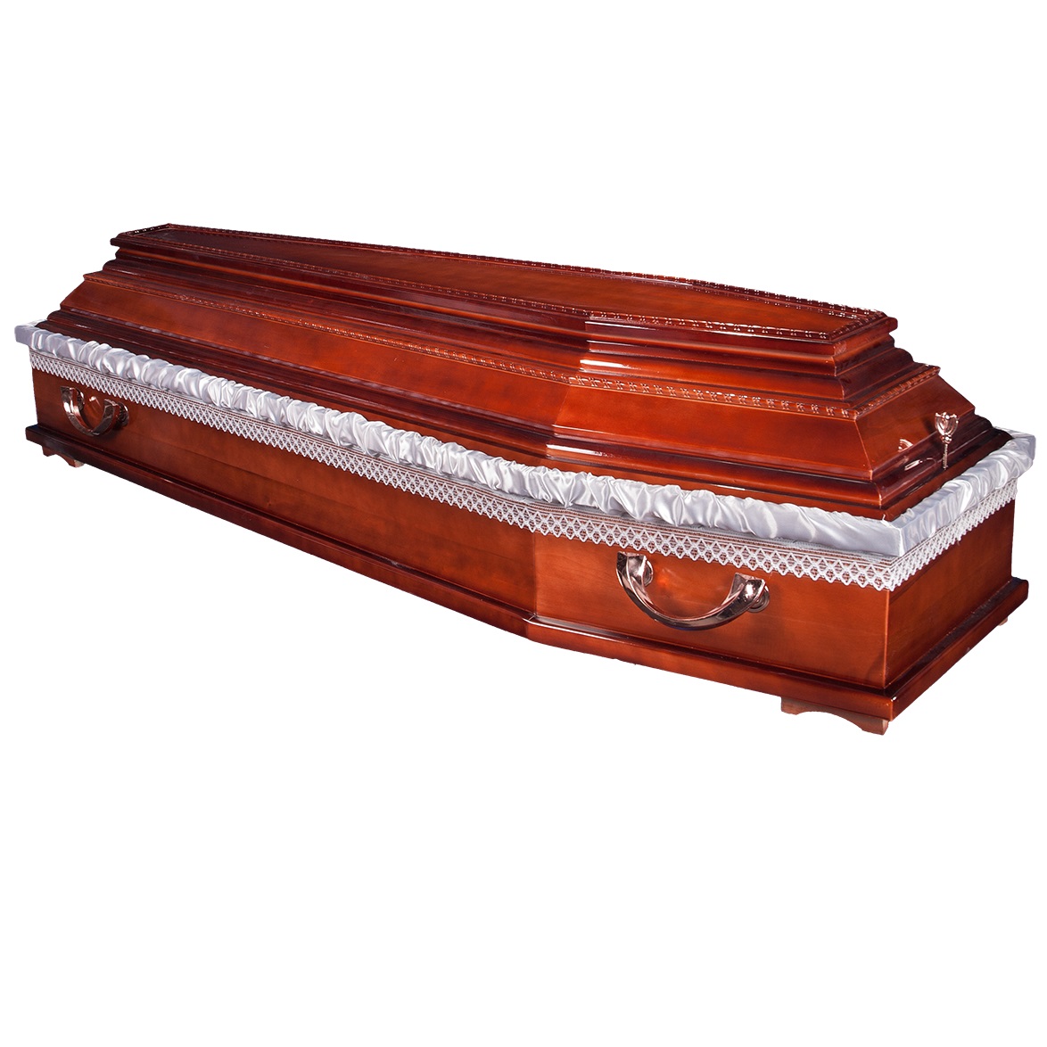 A hatszögletű koporsók a hagyományos temetések klasszikus formavilágát képviselik. Letisztult vonalvezetésük, elegáns arányai és időtálló megjelenésük méltóságteljes búcsút biztosítanak. Kínálatunkban többféle színben és kidolgozással elérhetők, igény szerint választható belső kárpitozással és fogantyúval.