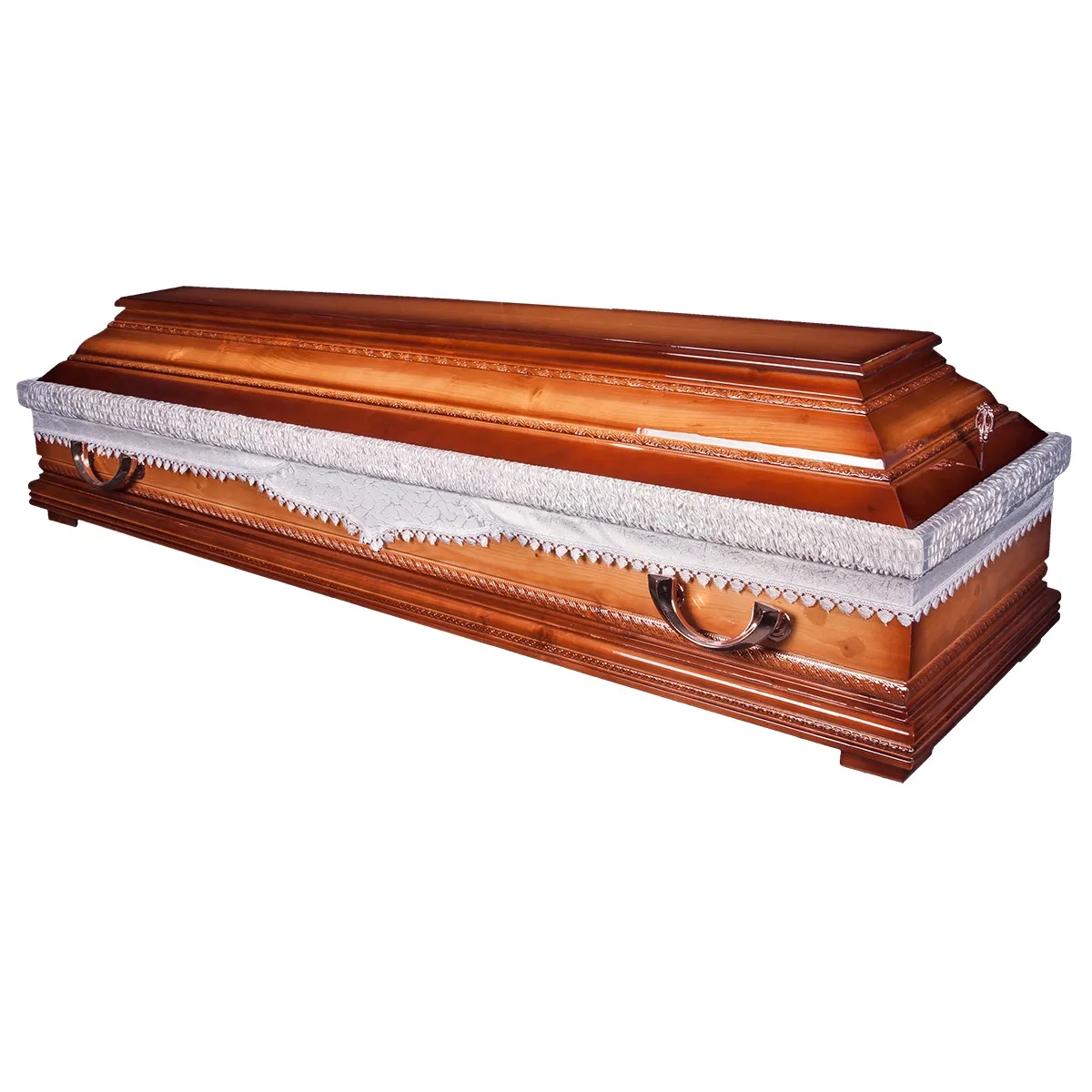 A négyszögletű koporsók modern, letisztult formavilágot képviselnek. Egyenes vonalvezetésük és szimmetrikus kialakításuk elegáns és visszafogott megjelenést kölcsönöz a búcsúztatásnak, legyen szó ravatalozásról vagy sírhelybe helyezésről. Ezek a koporsók elsősorban minőségi fa alapanyagokból készülnek – például lakkozott dió vagy tölgy –, amelyek természetes szépségükkel és időtállóságukkal hozzájárulnak a méltóságteljes búcsúhoz.